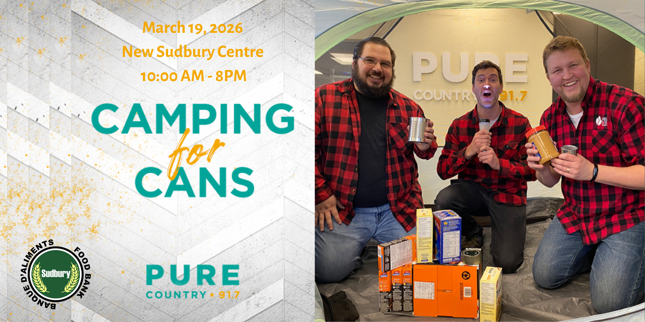 Learn MorePure Country 91.7 is once again bringing back their wonderful “Camping for Cans” event. It will be happening on March 19th from 10am to 8pm a the New Sudbury Centre. Here is what they have to say: The… Read More